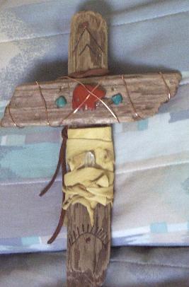 crystals, stones, feathers and leather strips to decorate my Crosses. I also burn in